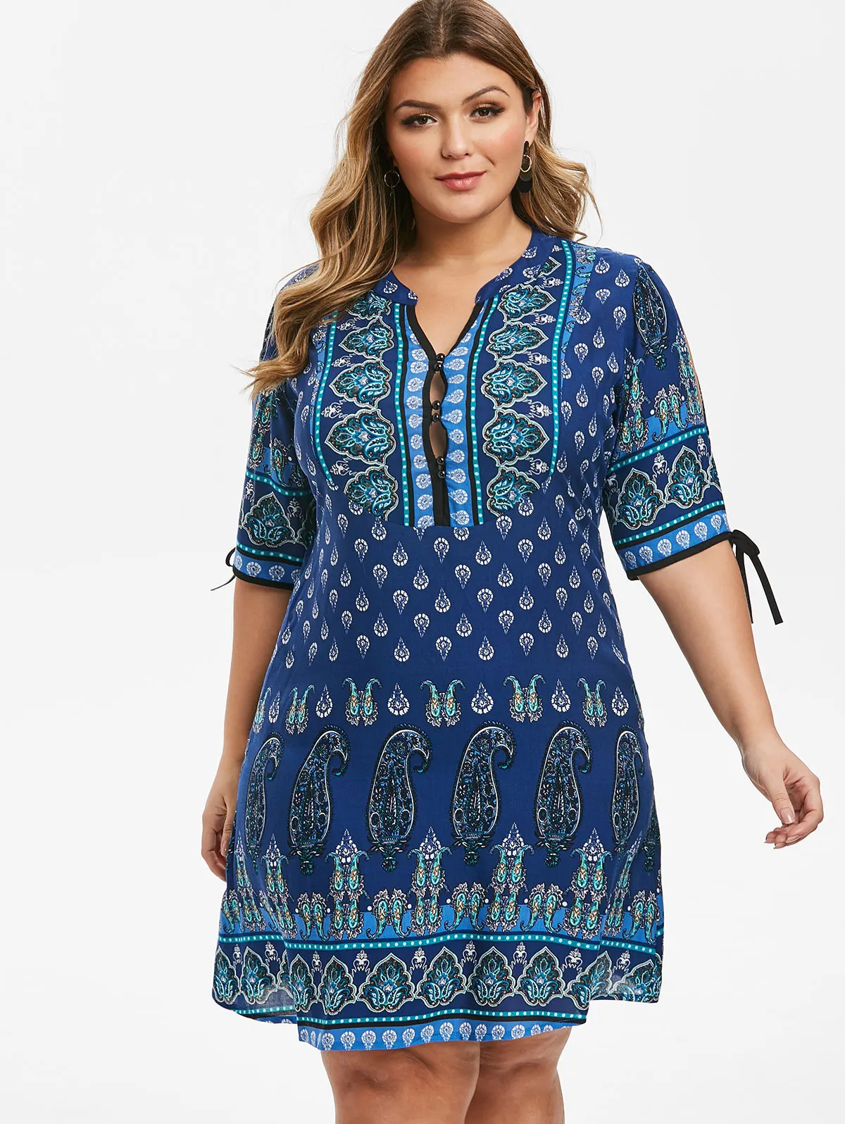 This product Rosegal Split Sleeve Ethnic Printed Plus Size Dress Split Half Sleeves A-Line Paisley Print V-neck is provided for you. Don't hesitate to buy this product.if you are interested in this product and want to buy, just click the buy button to get a discount